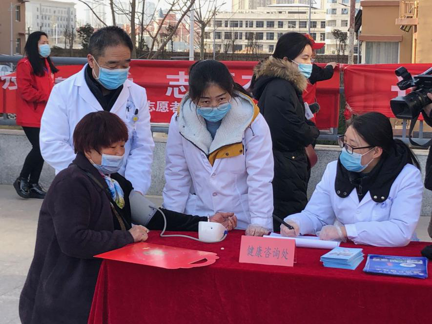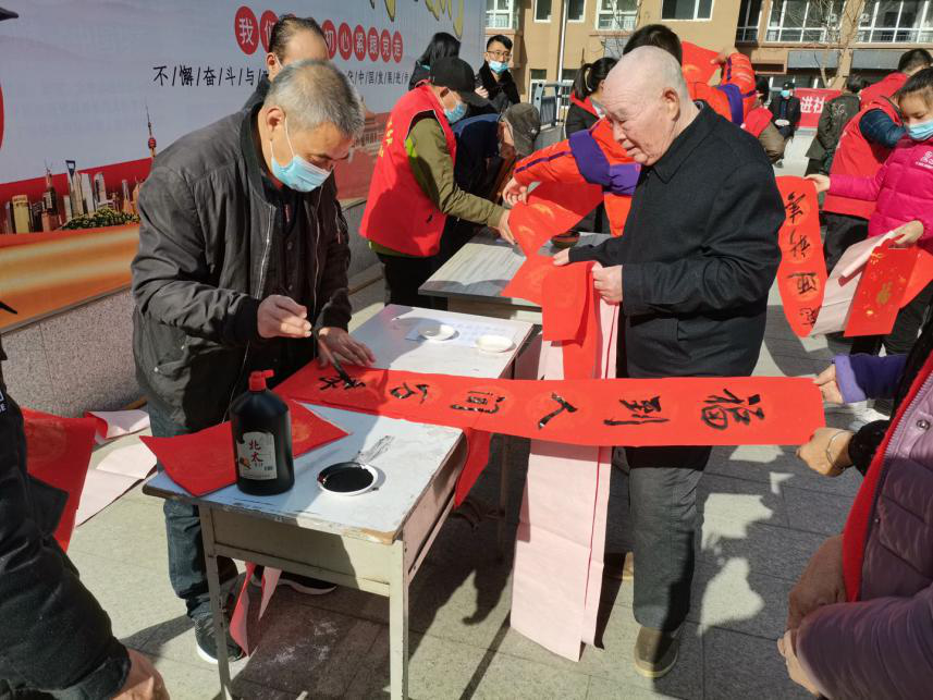 當(dāng)天,豐源居小區(qū)志愿者協(xié)同醫(yī)院職工和第一時(shí)間志愿者為不返鄉(xiāng)居民免費(fèi)理發(fā)、寫春聯(lián),并為居民提供了眼科、心內(nèi)科、甲乳科、彩超等免費(fèi)檢查。豐源居小區(qū)活動廣場上,數(shù)名書法愛好者忙得不亦樂乎,揮毫潑墨,書寫春聯(lián);十余名志愿者幫忙整理對子,把書寫好的春聯(lián)一字排開,晾干后裝進(jìn)禮袋送給居民;4名理發(fā)師志愿者為老年人理發(fā);醫(yī)院人員為老年人測血壓問診,現(xiàn)場氣氛其樂融融。